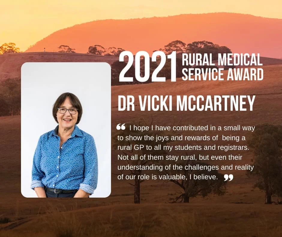 We are so proud of our very own Dr. Vicki McCartney who took home the Rural Medical Services award on the weekend.